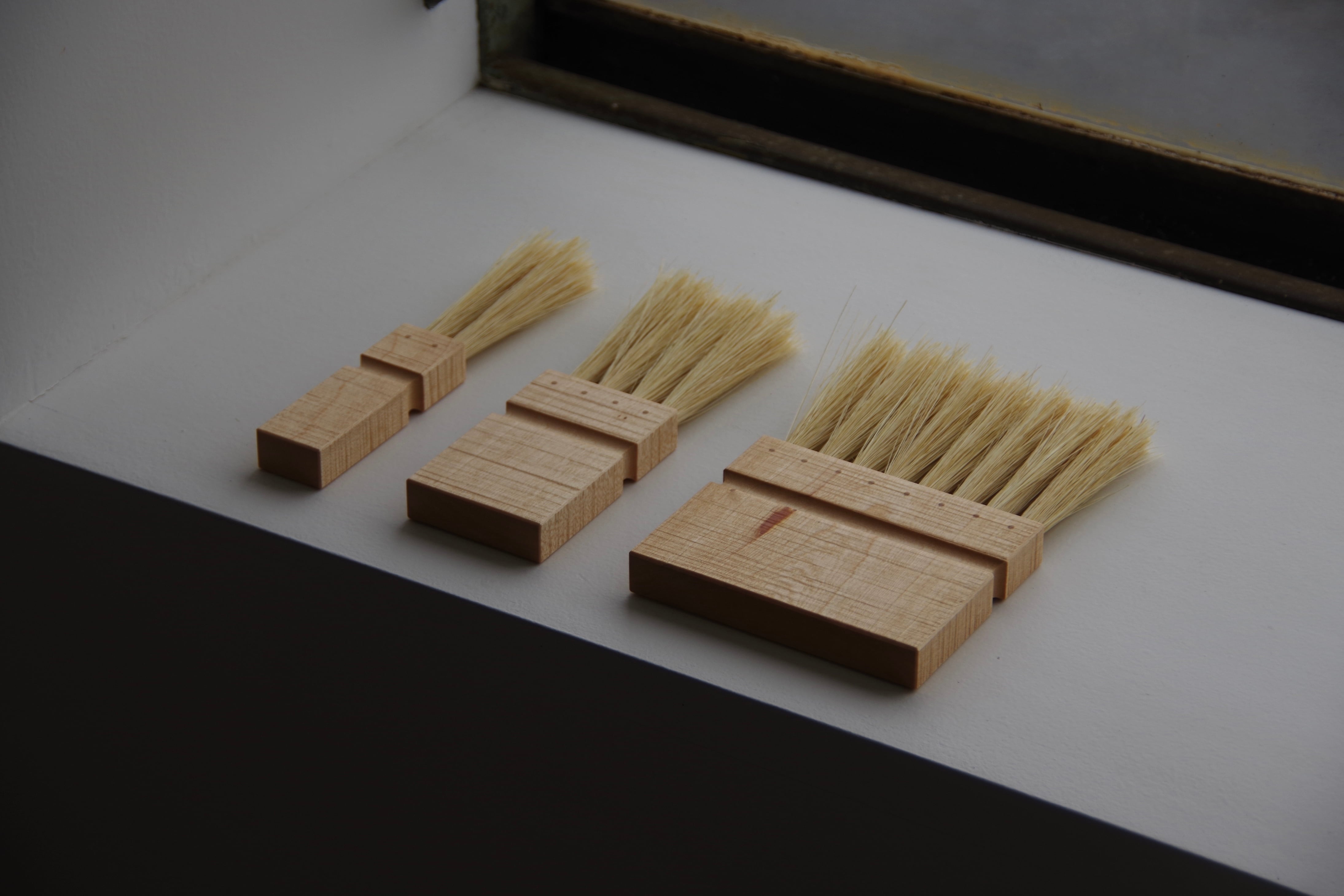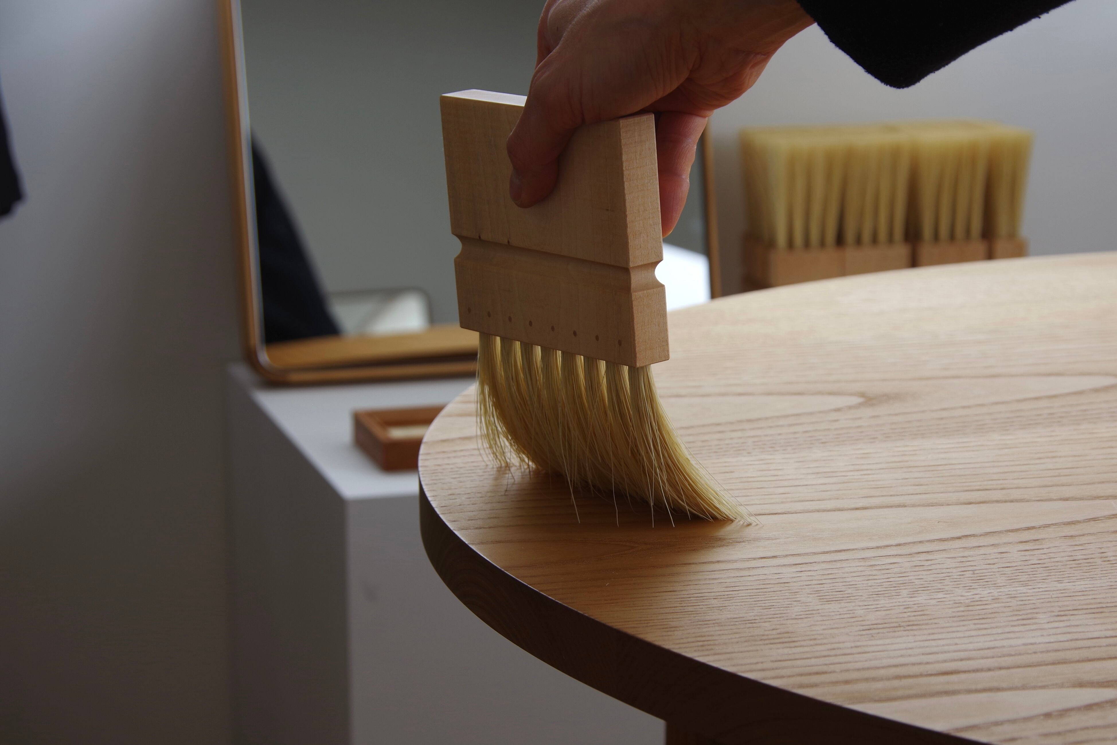毛材は抜けにくいように固定し、更に抑えとして打ち込んだ木釘が見た目のアクセントにもなっています。